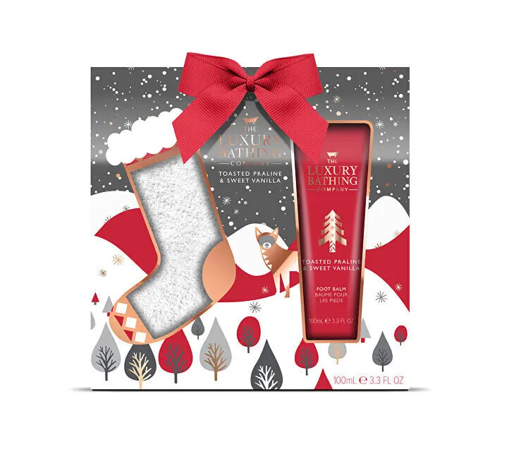 The set includes: Foot balm 100 ml Socks 1 pair Foot balm Nourishing foot balm hydrates and provides relief from uncomfortably dry and hardened skin. In addition, it leaves a pleasant refreshing scent. Use: Apply to dry and clean feet. Socks Soft and supple socks will give tired feet the warmth and comfort they need. Christmas Cookies & Vanilla The unique aroma of hazelnut candy and sweet vanilla creates a pleasant festive atmosphere. The Christmas-themed collection combines gold foil with typically Christmas red, white and grey. Do not take internally. Avoid contact with eyes, avoid around eyes. Discontinue use at any signs of irritation. Without parabens, silicones and phthalates Vegan and Cruelty free